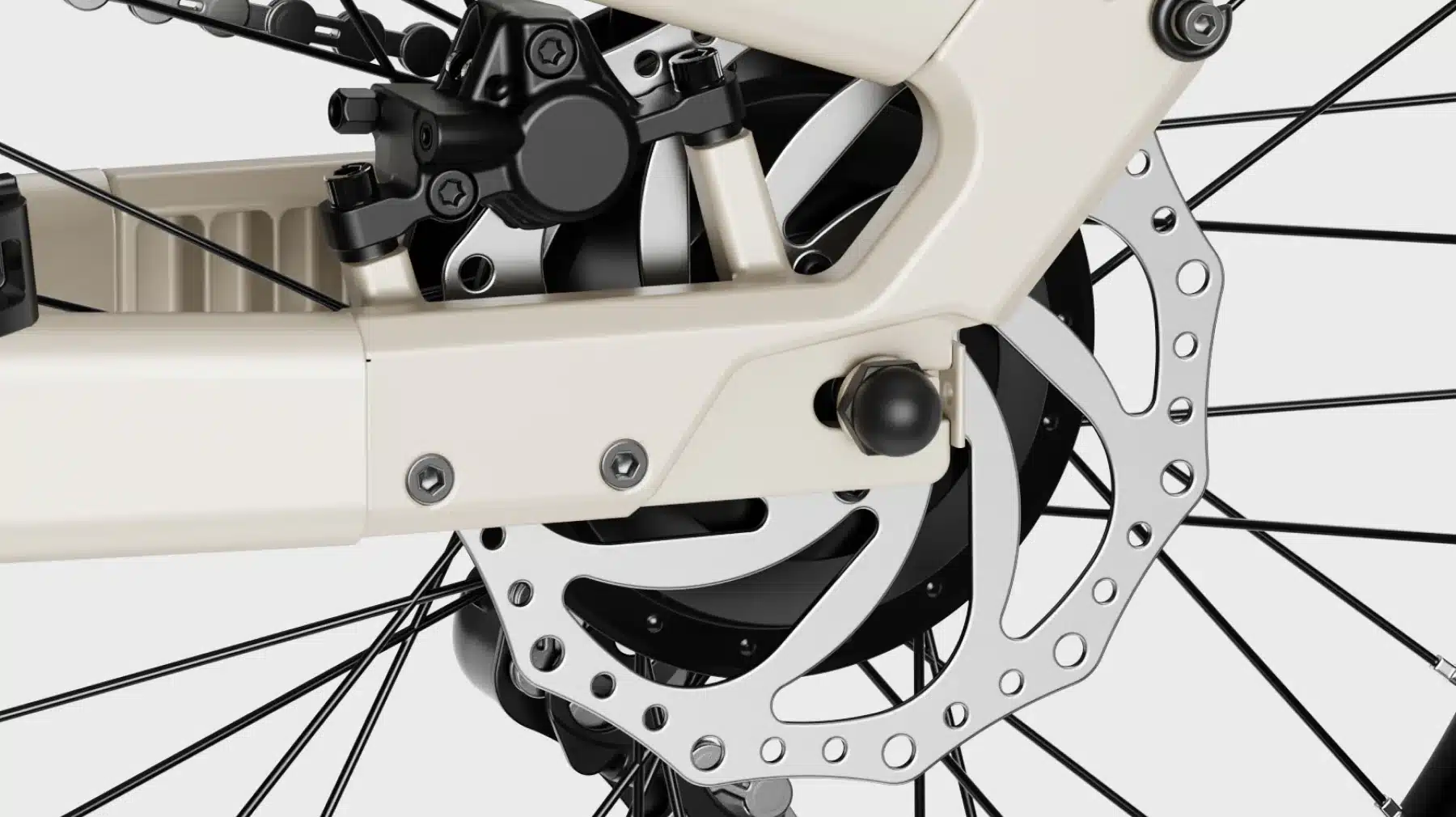 Hydraulische Scheibenbremsen bieten starke, präzise Bremskraft und sorgen für eine ruhige und zuverlässige Kontrolle bei jedem Wetter.