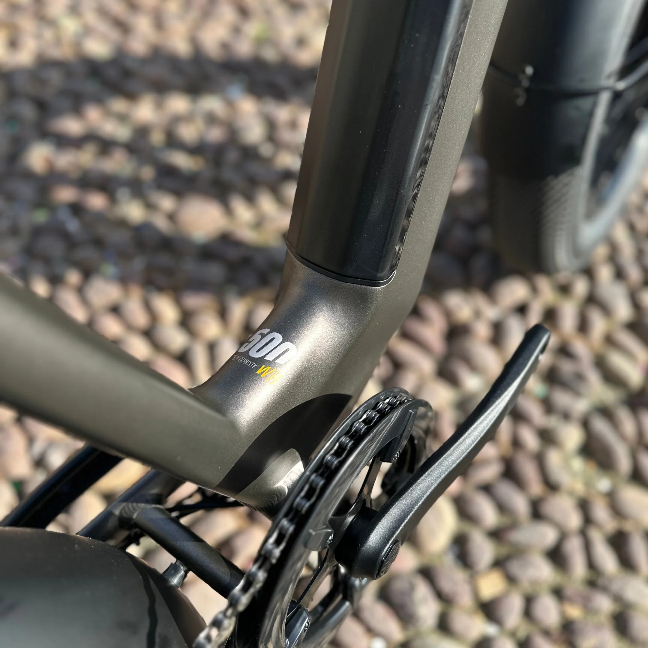 Der 36 V Akku mit 504 Wh ist formschön in den Rahmen integriert,