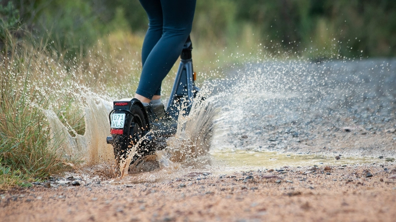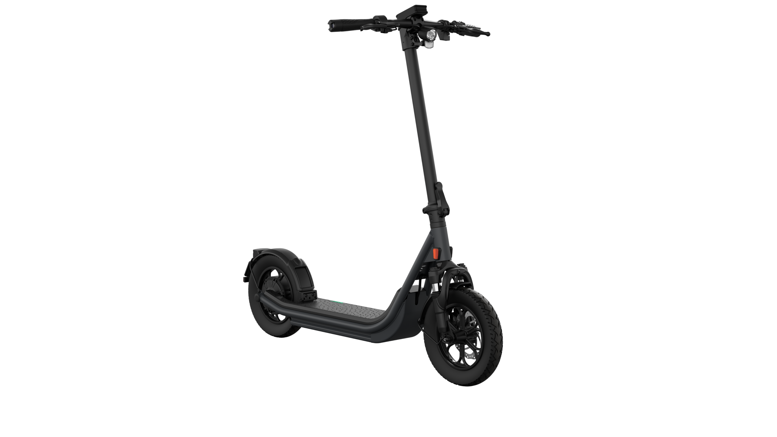 Der 37-V-Lithium-Ionen-Akku (499 Wh) mit Smart-BMS ermöglicht Reichweiten von bis zu 55 km. Akku und Controller sind IPX7-geschützt, der gesamte Roller IPX5-wasserbeständig.