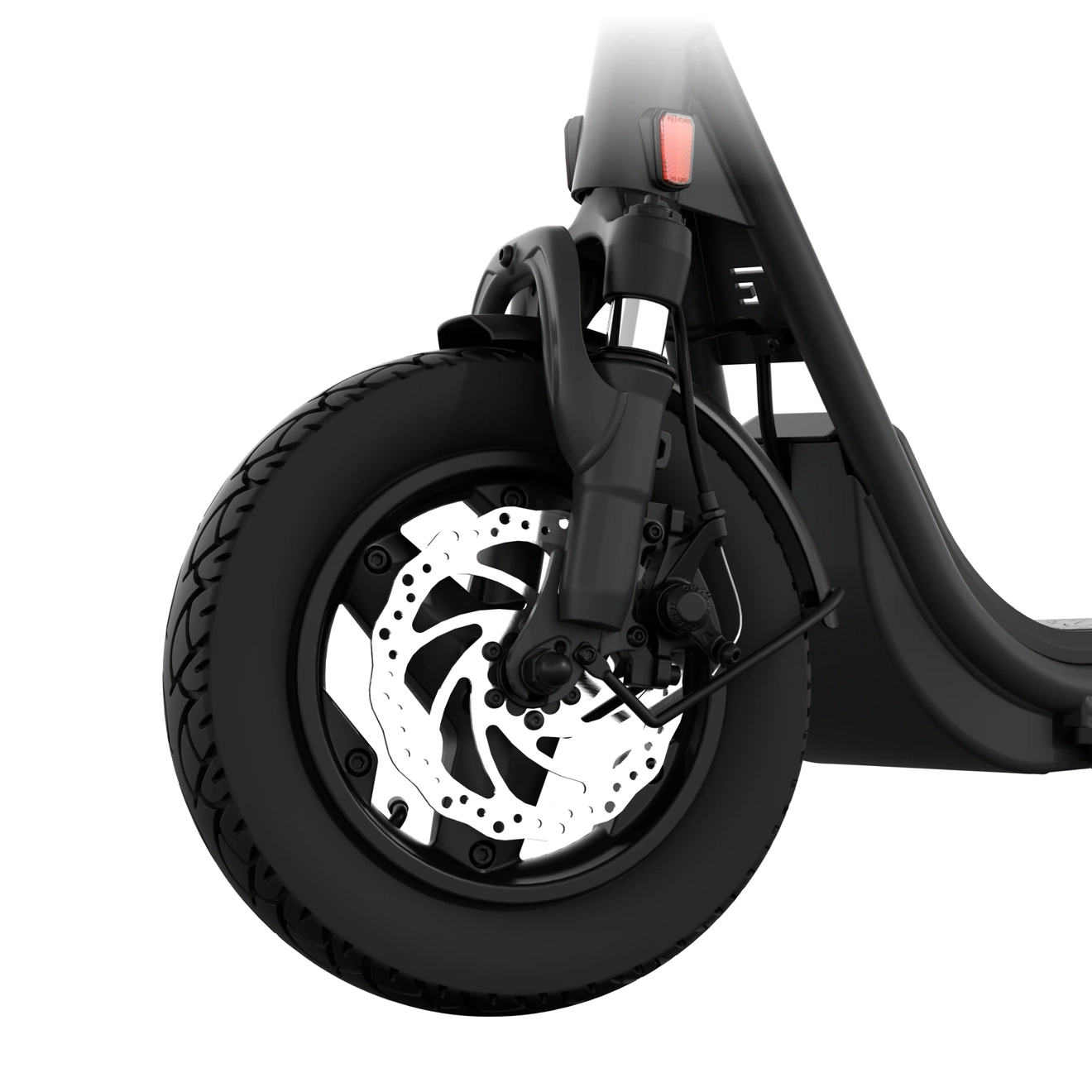 Die hochwertige Federgabel mit 20 mm Federweg gleicht Unebenheiten zuverlässig aus. In Kombination mit den 12,5″ Gravel-Luftreifen entsteht ein stabiles, komfortables Fahrgefühl – auch auf Kopfsteinpflaster oder schlechten Radwegen.