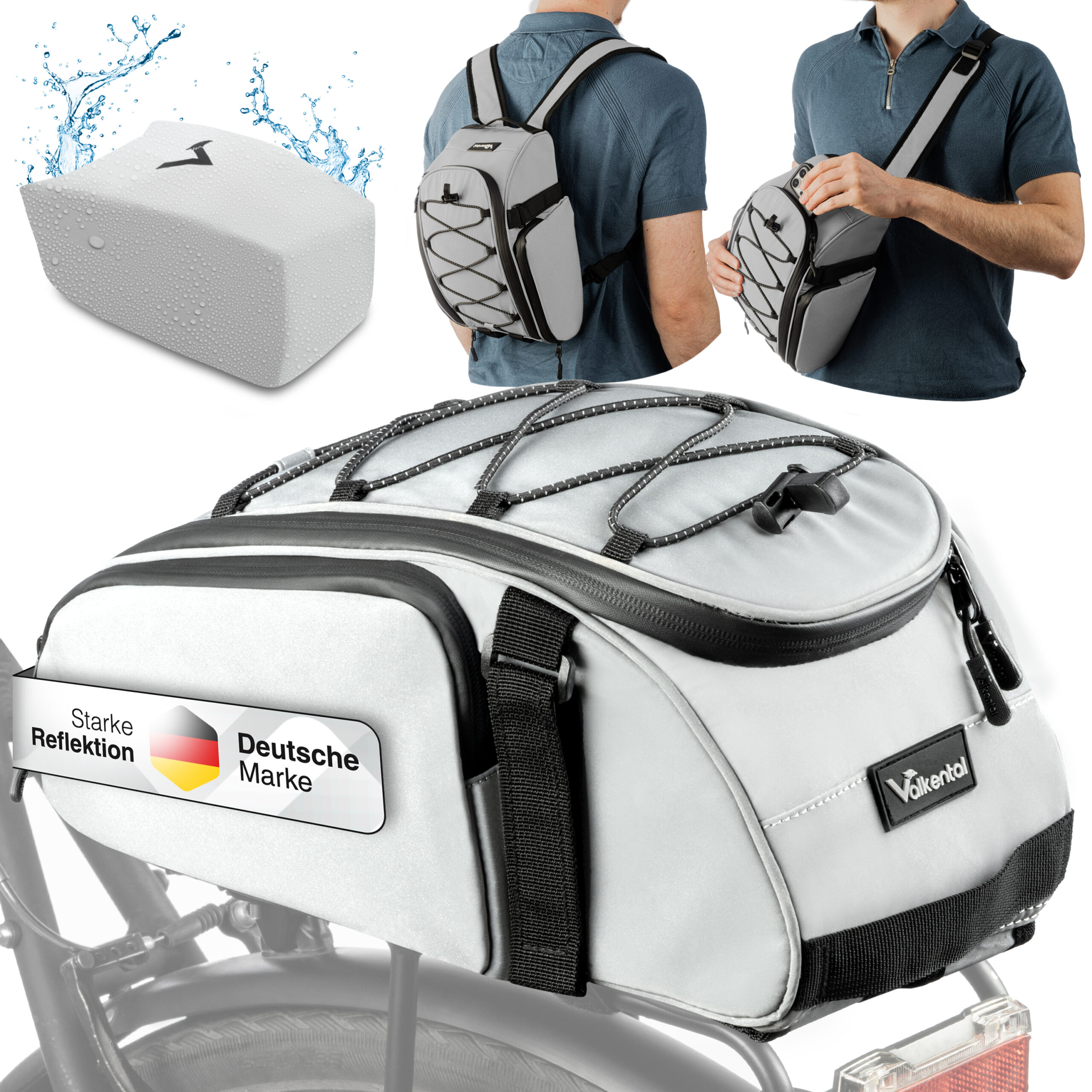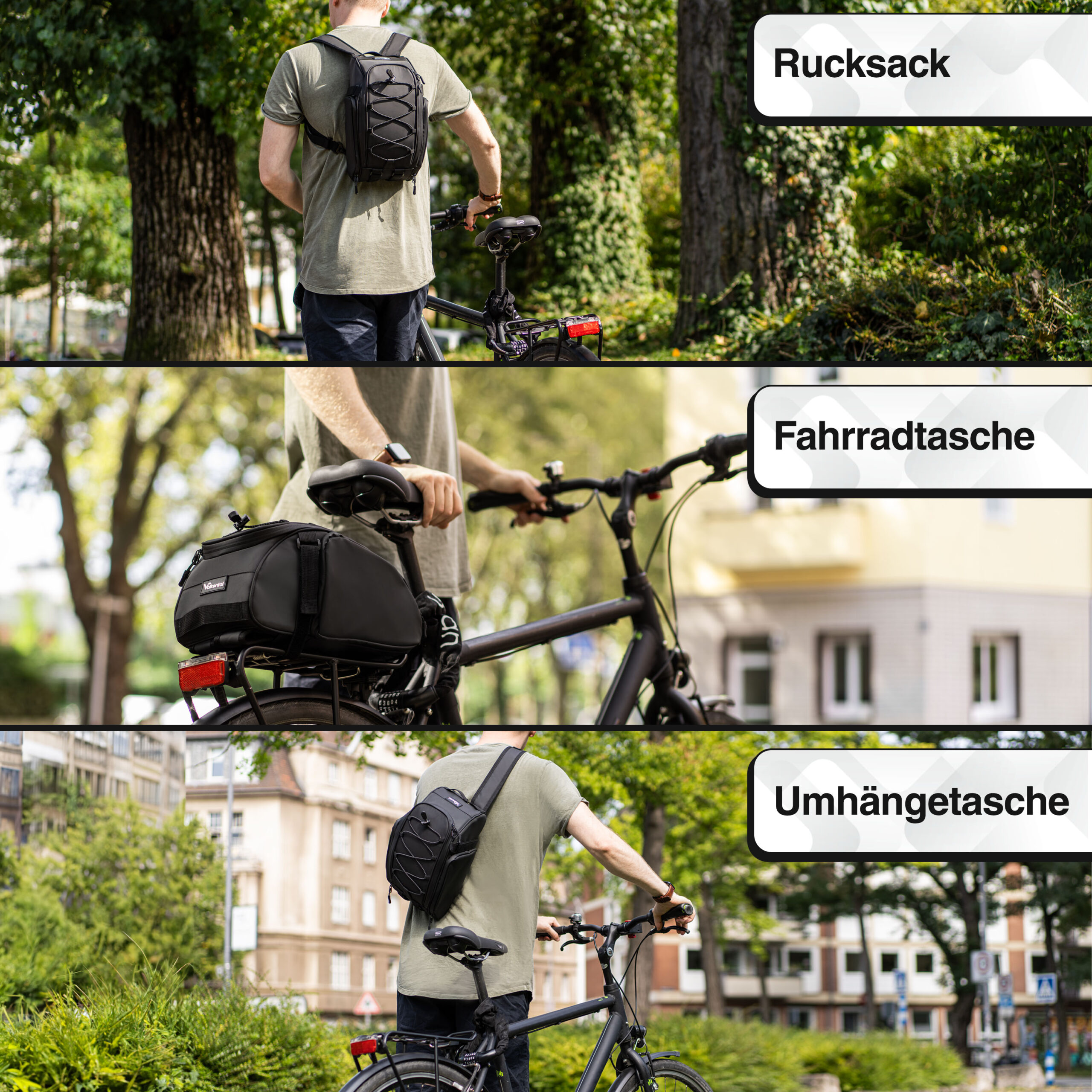 Valkental Trunk Bag Gepäckträgertasche wasserfest E-Bike ist die ideale Lösung für alle, die eine kompakte, vielseitige und alltagstaugliche Fahrradtasche suchen. Als aufliegende Gepäckträgertasche kombiniert sie sicheren Halt auf dem Fahrrad mit einer praktischen Rucksackfunktion für maximale Flexibilität im Alltag.